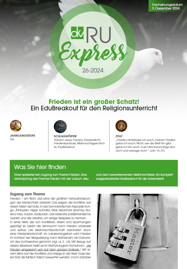 Frieden ist ein großer Schatz – EduBreakout im Advent, RUexpress 26/2024
