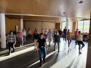 Am Nachmittag kam Bewegung ins Spiel: Unter Anleitung von Frau Walz lernten die Teilnehmenden Linedance, eine Kombination aus Rhythmus, Koordination und Teamgefühl, die eindrucksvoll zeigte, wie gemeinsames Tanzen im Ganztag verbindend wirken kann.